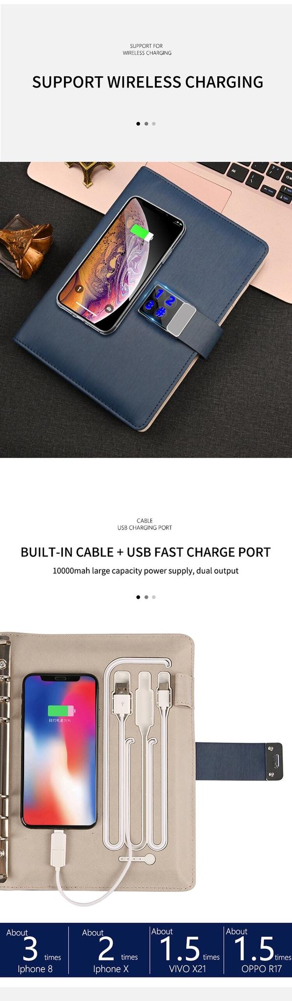 Бездротова зарядна станція прямо на обкладинці щоденника!Просто поклади телефон на блокнот і заряджайся.